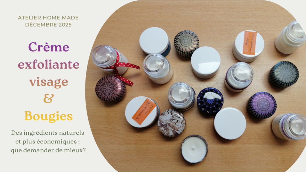 L’atelier Home Made, c’est fabriquer soi-même des produits cosmétiques pour prendre soin de soi, des produits d’entretien pour la maison…, avec des produits écologiques et plus économiques. Mais pas que ! Après la fabrication de la recette, on s’amuse dans son journal créatif et/ou son bullet journal !