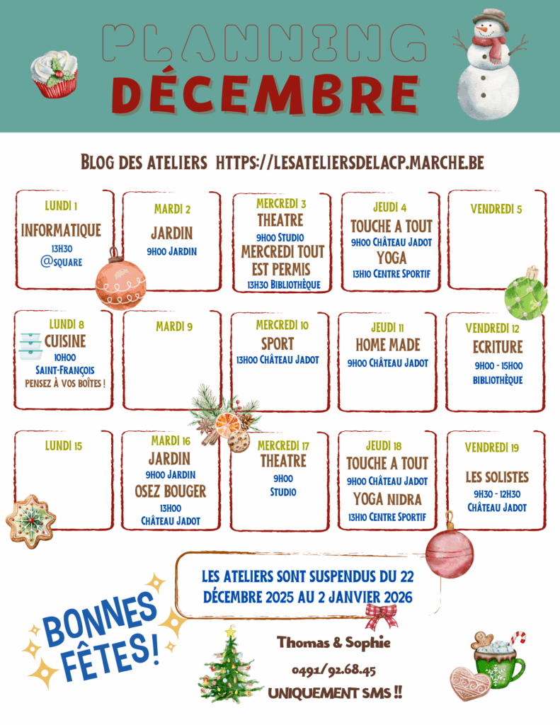 L’atelier Touche à tout a lieu le jeudi 11 et le jeudi 18 décembre